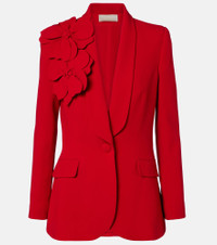 Elie Saab’s impactful designs are proof that the right outfit can make a special occasion all the more memorable. This elegant, sculptural single-breasted blazer is crafted from cady and adorned with voluminous floral appliques along the right side. Product Details - Material: 44% silk, 30% viscose, 24% acetate, 2% elastane - Care instructions: dry clean - Made in Lebanon - Designer color name: Red - Item color: red - Lining: 100% silk - Shawl lapel - Shoulder pads - Closure: single-breasted (one button) - Pockets: flap pockets - Cuff: three buttons - Vent: double - Item number: P01103887 Size & Fit - True to size - Shoulder pad inserts - Cinched waist - Non-stretchy fabric - Falls below the hip - The model seen in the picture is 178cm-5'10" and wearing a size FR 36