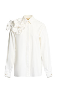 Floral-Appliquéd Cotton Poplin Shirt off-white
