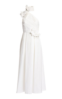 Floral-Appliquéd Cotton Poplin Maxi Dress off-white
