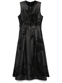 floral-embroidered maxi dress Highlights - Black - Textured finish - Floral embroidery - Concealed rear fastening - Round neck - Sleeveless - Belted waist - Knot detailing - Pleat detailing - Full lining - Straight hem - Long length Imported Composition Outer: Polyester 53%, Silk 45%, Polyurethane 2% Lining: Silk 100%