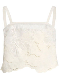 floral-lace tank top Highlights - White - Rear zip fastening - Thin shoulder straps - Broderie anglaise - Cropped Imported Composition Polyester 74%, Cotton 26%