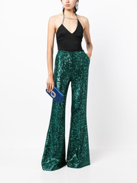 sequin-embellished flared trousers Highlights - Green - Silk blend - All-over sequin embellishment - High-waisted - Flared - Side welt pocket Imported Composition Body: Polyester 60%, Silk 39%, Elastane 1% Lining: Silk 100% SIZE & FIT Model measurements Height 5 ft 10 in(1.77 m) Bust/Chest 31.49 in(80 cm) Hips 35.43 in(90 cm) Waist 25.19 in(64 cm) FittingInformation This piece fits true to size. We recommend you get your regular size Designed to be fitted at the waist and through the thigh, loose from the knee Made with a mid-weight fabric Washing instructions Dry Clean Only