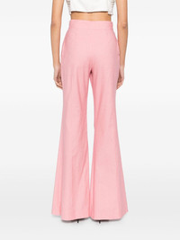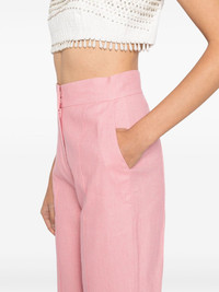 Gin trousers Highlights - Pink - Concealed front button, hook and zip fastening - Two side slit pockets Imported Composition Outer: Cotton 56%, Linen/Flax 34%, Silk 10% Lining: Silk 100% SIZE & FIT Model measurements Height 5 ft 10 in(1.77 m) Bust/Chest 31.49 in(80 cm) Hips 35.43 in(90 cm) Waist 25.19 in(64 cm) FittingInformation Designed with a flared hem, these trousers allow for a close fit at the waist with a slim fit over the leg and widening towards the hem Made from a midweight non-stretch fabric