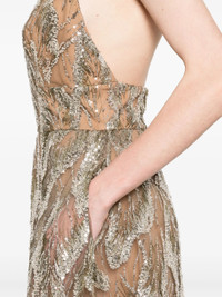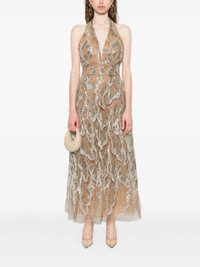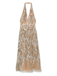 silver-tone rear zip fastening halterneck open back flared hem - Color: BROWN/GREY - Made in: Lebanon - Designer Style ID: D0614 X0002 Composition and care Outer Composition Silk: 35.0%, Lining Composition Silk: 100.0%, Outer Composition Polyamide: 65.0%