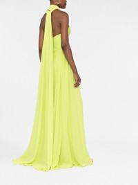 halterneck pleated gown Lebanese designer Elie Saab is famous for its bold, billowing dresses. A prime example of that approach, this gown is made from lime green silk. The cut-out front and the pleated skirt speak to that same aesthetic. Made in Italy Composition Silk 100% SIZE & FIT Model measurements Height 5 ft 11 in(1.8 m) Bust/Chest 31.49 in(80 cm) Hips 36.61 in(93 cm) Waist 24.4 in(62 cm) FittingInformation This piece fits true to size. We recommend you get your regular size Designed for a close fit at the bust and waist, but loose at the hip Made with a mid-weight non-stretch fabric Washing instructions Machine Wash