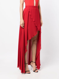 high-low fly away skirt red silk asymmetric design ruffled detailing high-waisted concealed rear zip fastening pleated skirt Made in Italy Composition Outer: Silk 100% Lining: Silk 100% SIZE & FIT Model measurements Height 5 ft 9 in(1.76 m) Bust/Chest 29.13 in(74 cm) Hips 33.07 in(84 cm) Waist 22.83 in(58 cm) FittingInformation This piece fits true to size. We recommend you get your regular size Designed for a loose fit with a close fit at the waist Made with a lightweight non-stretch fabric Washing instructions Dry Clean Only