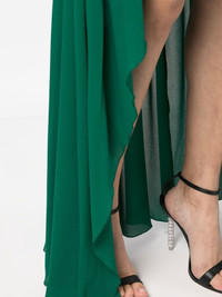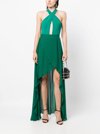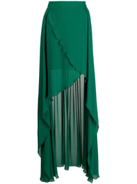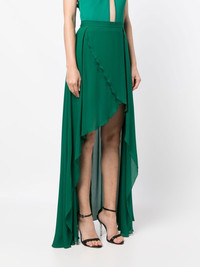 high-low fly away skirt dark green silk high-waisted asymmetric design pleated skirt ruffled detailing Made in Italy Composition Outer: Silk 100% Lining: Silk 100% SIZE & FIT Model measurements Height 5 ft 9 in(1.76 m) Bust/Chest 29.13 in(74 cm) Hips 33.07 in(84 cm) Waist 22.83 in(58 cm) FittingInformation This piece fits true to size. We recommend you get your regular size Designed for a loose fit with a close fit at the waist Made with a lightweight non-stretch fabric Washing instructions Dry Clean Only