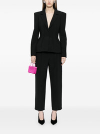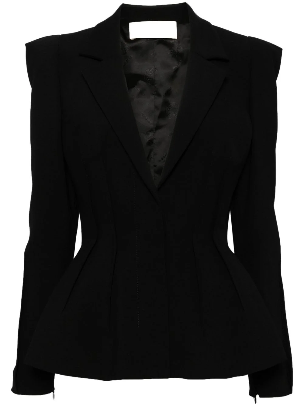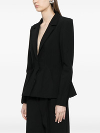 inverted dart blazer Highlights - Black - Virgin wool blend - Crepe texture - Dart detailing - Notched lapels - Concealed front fastening - Long sleeves - Peplum hem Made in Italy Composition Outer: Polyester 52%, Virgin Wool 43%, Elastane 5% Lining: Viscose 100% SIZE & FIT Model measurements Height 5 ft 10 in(1.77 m) Bust/Chest 30.7 in(78 cm) Hips 35.03 in(89 cm) Waist 23.62 in(60 cm) FittingInformation Designed for a slim fit that sits just away from the body offering a close yet comfortable fit The vented hem offers movement at the rear Made from a midweight non-stretch fabric This piece fits true to size – take your usual size