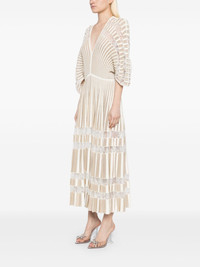 knit midi dress Highlights - Cream white - Rear zip fastening - V-neck - Pleat detailing Made in Italy Composition Outer: Viscose 94%, Polyester 4%, Nylon 1% Metal 1% SIZE & FIT Model measurements Height 5 ft 9 in(1.76 m) Bust/Chest 31.1 in(79 cm) Hips 35.03 in(89 cm) Waist 24.4 in(62 cm) FittingInformation Designed for a close fit at the chest and waist with a loose fit at the hip Made with a midweight knit, this piece offers some stretch