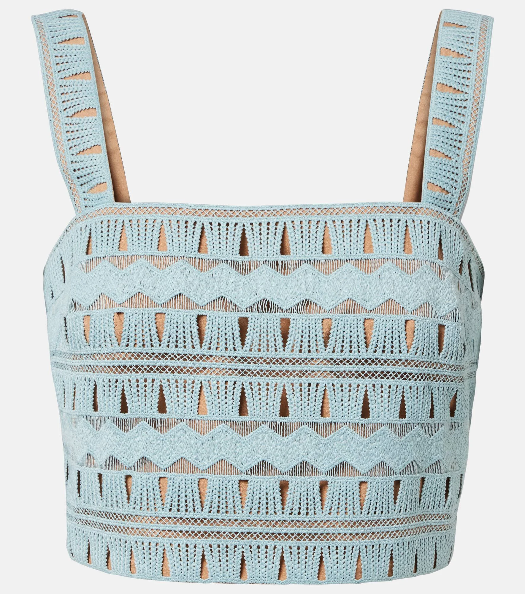 Elie Saab’s impactful designs are proof that the right outfit can make a special occasion all the more memorable. Carefully knitted from silk-blend material, this top is a cropped piece with thick straps and a zipper fastening at the back. Product Details - Material: 69% silk, 31% polyester - Care instructions: dry clean - Made in Lebanon - Color: blue - Designer color name: Turn Blue - Lining: 100% silk - Closure: zipped back - Item number: P01127559 Size & Fit - True to size - Straight fit - Non-stretchy fabric - Cropped - The model seen in the picture is 178cm-5'10" and wearing a size FR 36