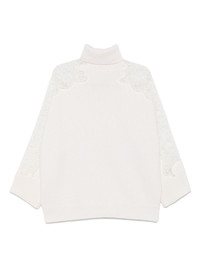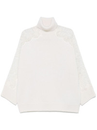 lace-detail sweater Highlights - Ecru/white - Wool-cashmere blend - Knitted construction - Lace inserts - Roll neck - Long semi-sheer sleeves - Ribbed trim Made in Italy Composition Wool 85%, Cashmere 15% Washing instructions Hand Wash