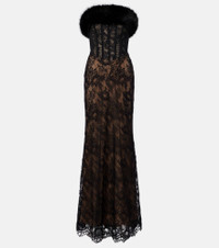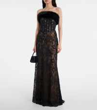 Elie Saab’s impactful designs are proof that the right outfit can make a special occasion all the more memorable. This strapless gown is adorned with delicate lace embroidery and finished with a plush-trimmed bodice for an elegant touch. Product Details - Material: 38% cotton, 28% silk, 22% viscose, 11% polyamide, 1% polyester - Care instructions: dry clean - Made in Lebanon - Designer color name: Black - Item color: black - Lining: 100% silk - Detachable trim - Boning - Closure: concealed zipped back - Material II: 100% polyester - Item number: P01090455 Size & Fit - True to size - Strapless - Internal boned corset for support - Fitted - Non-stretchy fabric - The model seen in the picture is 178cm-5'10" and wearing a size FR 36