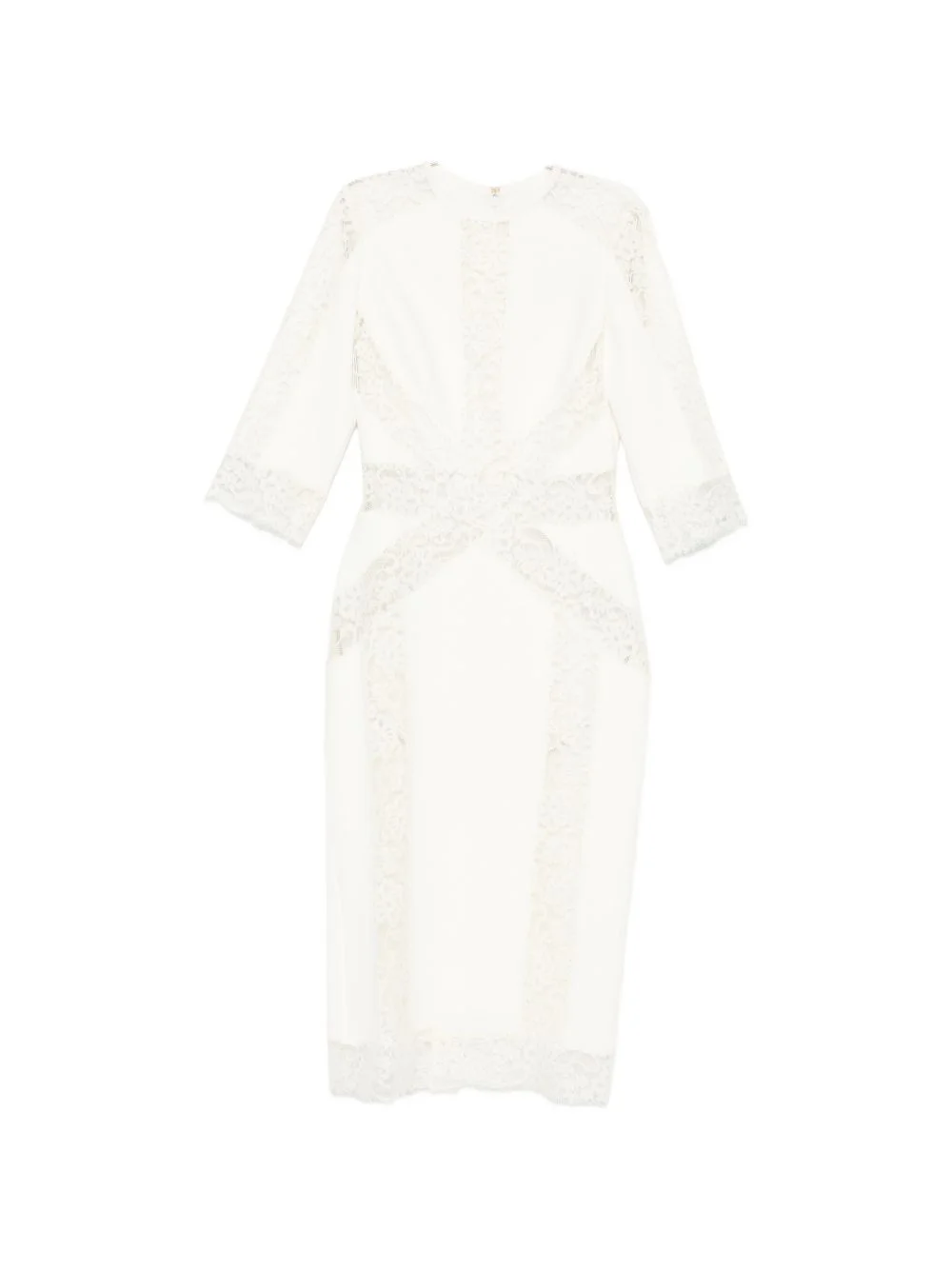 lace-panel midi dress Highlights - White - Lace trim - Crew neck Imported Composition Outer: Cotton 43%, Silk 17%, Nylon 17%, Viscose 12%, Acetate 10%, Elastane 1% Lining: Silk 100% Washing instructions Dry Clean Only