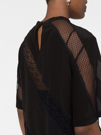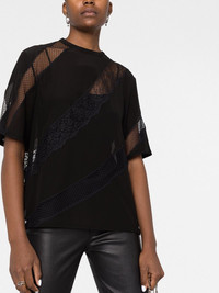 lace-panelled T-shirt Elie Saab's silk T-shirt has point d'esprit and lace panels that reveal flashes of skin. The crew neckline and relaxed silhouette add to the casual feel. Made in Italy Composition Silk 100% SIZE & FIT Model measurements Height 5 ft 11 in(1.8 m) Bust/Chest 31.49 in(80 cm) Hips 36.61 in(93 cm) Waist 24.4 in(62 cm) Washing instructions Dry Clean Only