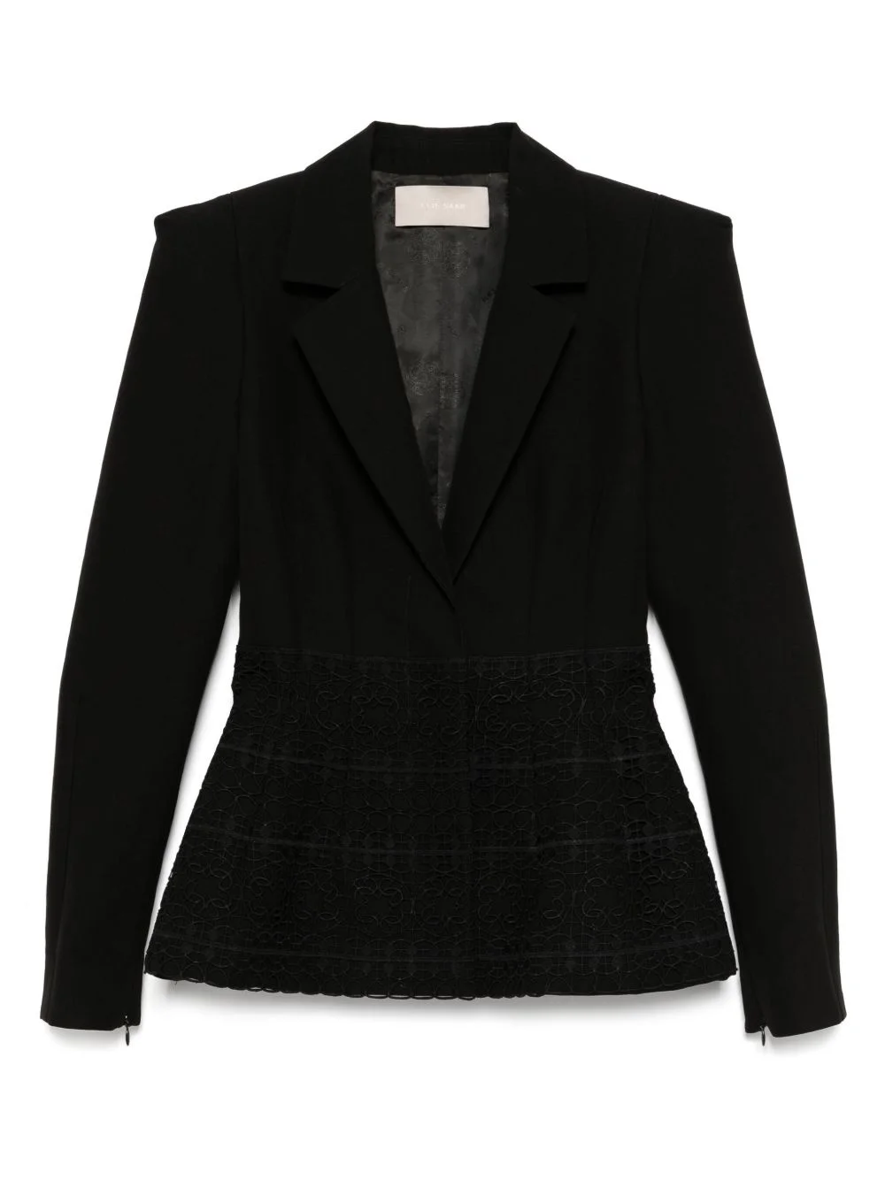Macrame peplum blazer Highlights - Black - Front button fastening - Zipped cuffs - Full lining Made in Italy Composition Organic Cotton 43%, Polyester 30%, Viscose 27%