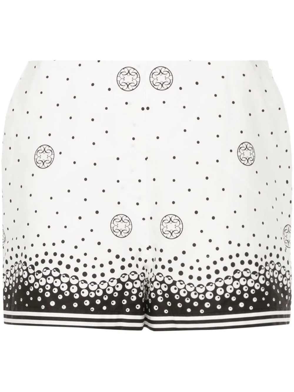 monogram-print cotton shorts Highlights - White/black - Cotton - Poplin texture - Polka dot and monogram print - Dart detailing - Two diagonal pockets to the sides - Thigh-length - Full lining - Concealed side zip fastening Imported Composition Cotton 100% SIZE & FIT Model measurements Height 5 ft 11 in(1.8 m) Bust/Chest 32.67 in(83 cm) Hips 36.22 in(92 cm) Waist 24.4 in(62 cm) FittingInformation Designed for a slim fit that sits just away from the body offering a close yet comfortable fit Made from a midweight non-stretch fabric This piece fits true to size – take your usual size