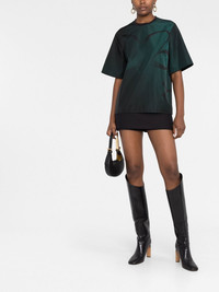 monogram-print T-shirt Elie Saab's T-shirt is subtly accented with an abstract monogram in dark teal hues that lend a subtle touch of colour to the black panels. The loose-fitting silhouette adds to the laidback feel. Made in Italy Composition Polyamide 100% SIZE & FIT Model measurements Height 5 ft 11 in(1.8 m) Bust/Chest 31.49 in(80 cm) Hips 36.61 in(93 cm) Waist 24.4 in(62 cm) FittingInformation This piece fits true to size. We recommend you get your regular size Cut for a loose fit Made with a mid-weight fabric