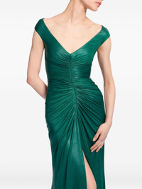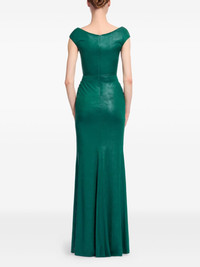 off-the-shoulder jersey maxi dress Highlights - Green - V-neck - Gathered detailing - Cap sleeves - Back zip fastening Imported Composition Outer: Polyester 95%, Spandex/Elastane 5% Washing instructions Read Manufacturer Guidelines