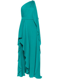 one-shoulder silk gown Highlights - Teal blue - Silk - Draped detailing - One-shoulder - Concealed side zip fastening - Sleeveless - Fitted waistline - Side slit - Floor-length Imported Composition Outer: Silk 100%