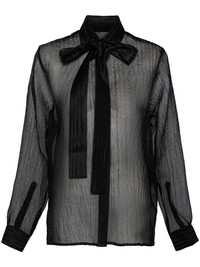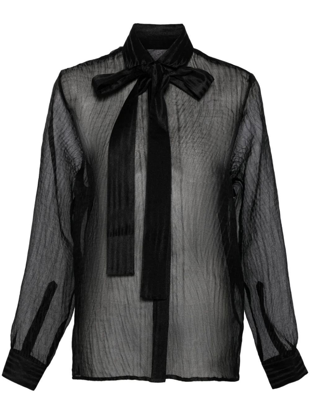 organza shirt Highlights - Black - Organza - Semi-sheer construction - Textured finish - Concealed front button fastening - Front bow fastening - Classic collar - Long sleeves - Buttoned cuffs - Straight hem Imported Composition Polyester 97%, Elastane 2%, Lurex 1%