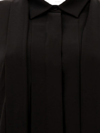 pleated neck-tie shirt Highlights - Black - Tie neck - Long sleeves - Button fastening - Centre-back pleat Imported Composition Polyester 94%, Lycra 6% Washing instructions Read Manufacturer Guidelines