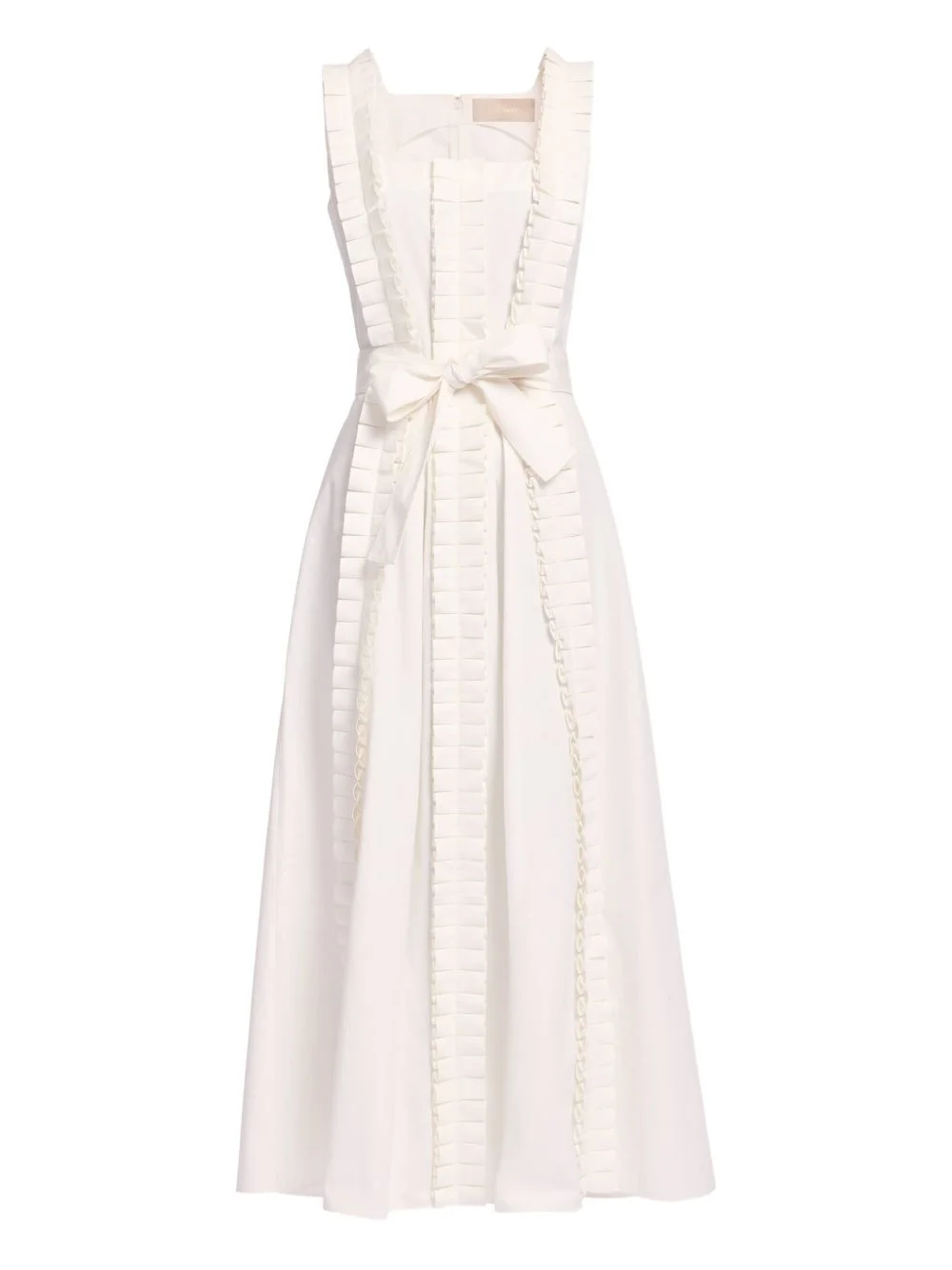 pleated ruffle midi dress Highlights - White - Pleated detail - Ruffle detail - Square neck - Belt - Sleeveless Made in Italy Composition Outer: Organic Cotton 100% Washing instructions Read Manufacturer Guidelines