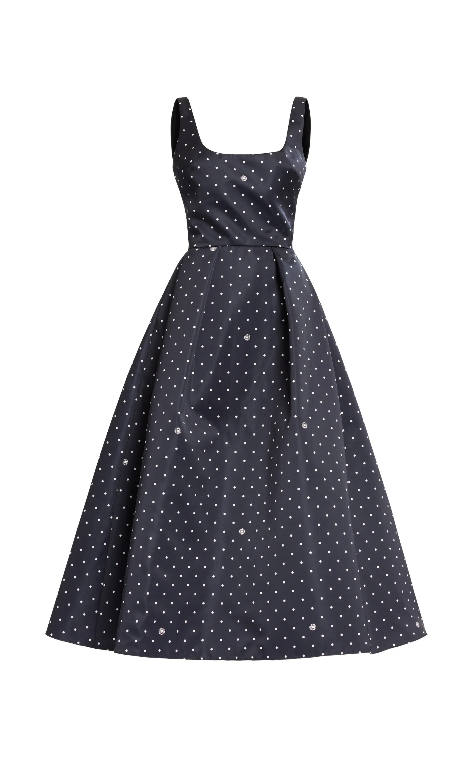 Effervescence, opulent textures, and a fierce feminine energy take hold of the Lebanese talent this season with bold reinterpretations of his fairytale gowns. It's a wildly glamorous lesson in precise, couture-level craftsmanship. PRODUCT DETAILS - Resort '26 - Regular fit, slim straps, pockets, A-line skirt, midi hem - Concealed zip fastening at back - Fully lined - Composition: 59%PL 41%PA - Color: Black polka dots - Dry clean - Resort '26