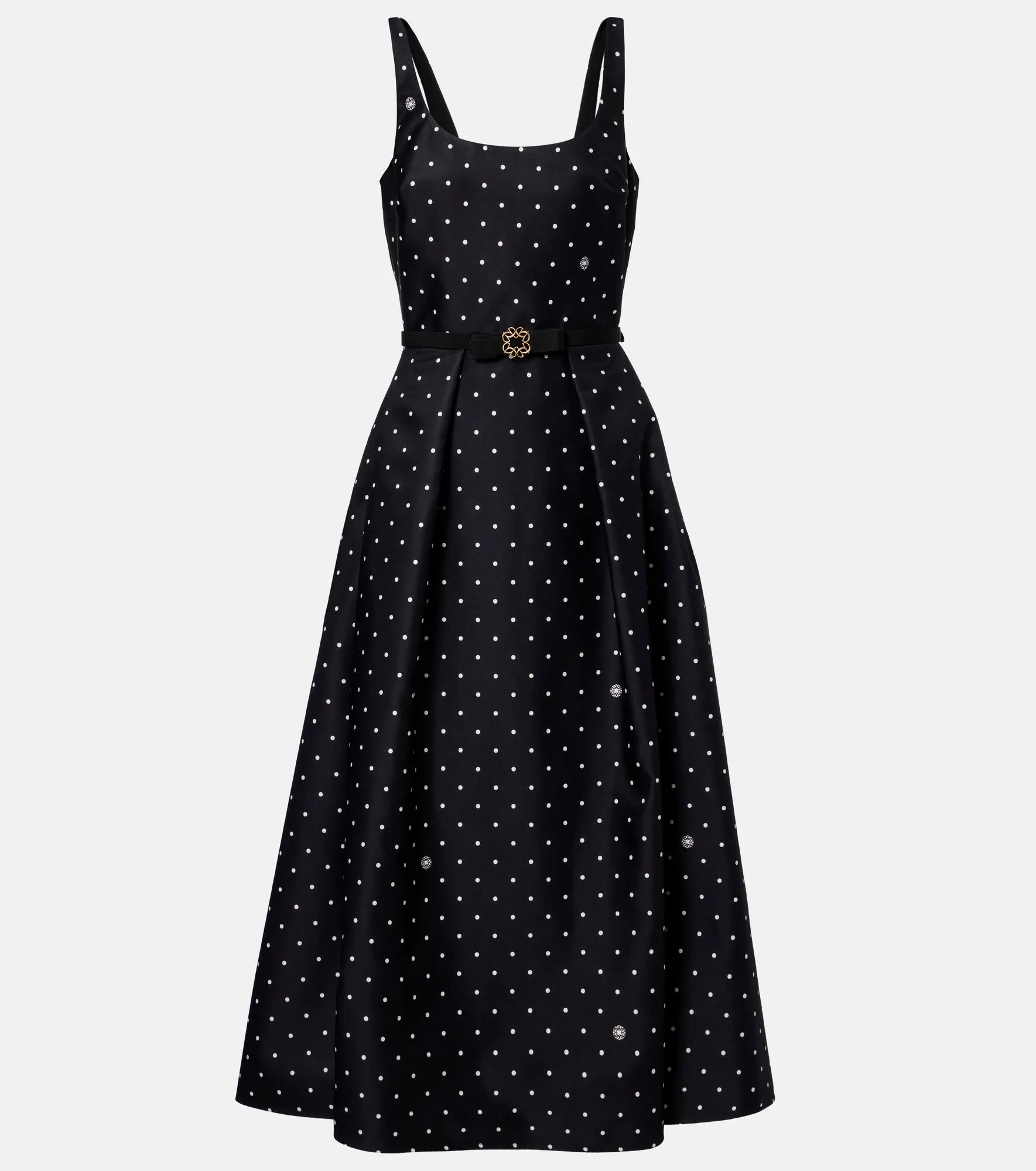 Elie Saab’s impactful designs are proof that the right outfit can make a special occasion all the more memorable. Printed with an elegant polka-dot motif, this midi dress features a fit-and-flare silhouette, an open back, and a detachable belt. Product Details - Material: 42% polyester, 29% polyamide, 29% silk - Care instructions: dry clean - Made in Lebanon - Color: black - Designer color name: Black Polka Dots - Item color: black - Lining: 100% silk - Closure: invisible zipper - Detachable belt - Item number: P01127480 Size & Fit - True to size - Low back - Cinched waist - Non-stretchy fabric - The model seen in the picture is 178cm-5'10" and wearing a size FR 36