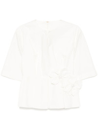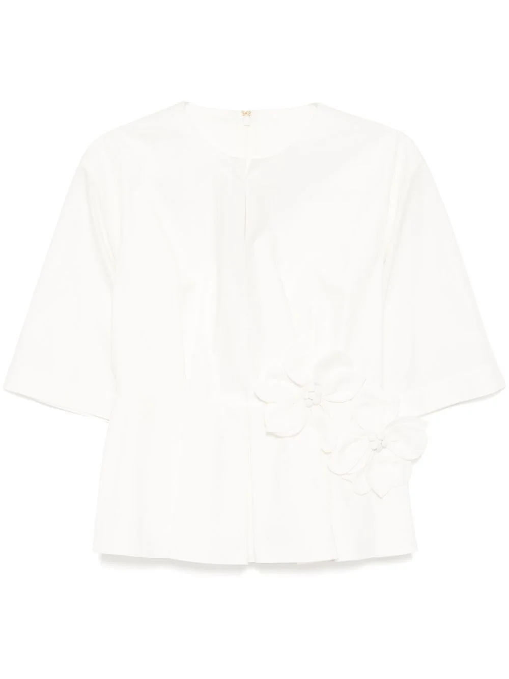 Poplin blouse Highlights - White - Concealed rear hook and zip fastening - 3d detailing - Short sleeves Imported Composition Cotton 100%
