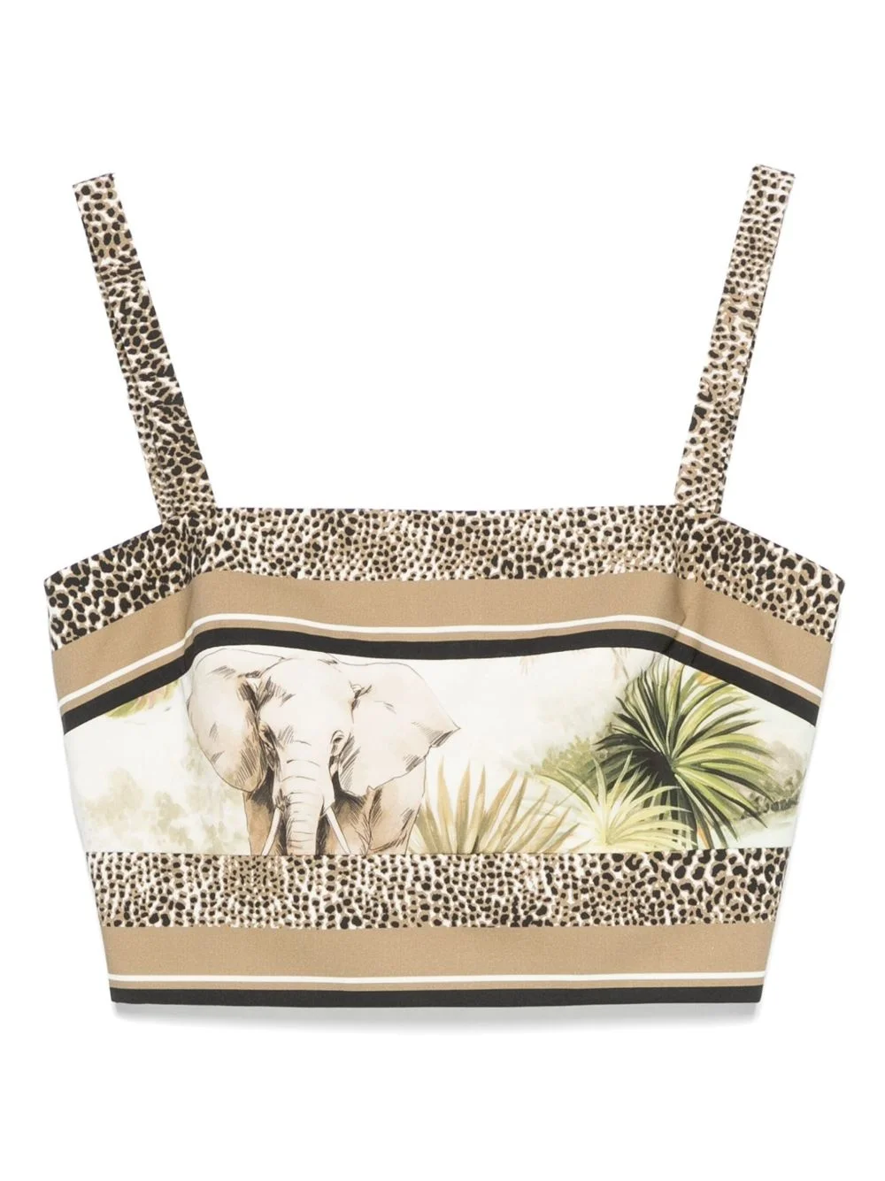 cotton tank top Highlights - Brown - Rear zip fastening - Square neck - Sleeveless - All-over graphic print Imported Composition Cotton 100%