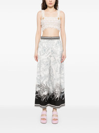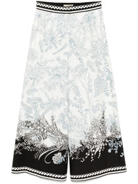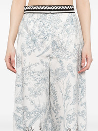 printed cotton pants Highlights - White/multicolour - Front hook and zip fastening - Two side inset pockets Imported Composition Organic Cotton 100% SIZE & FIT Model measurements Height 5 ft 10 in(1.78 m) Bust/Chest 32.67 in(83 cm) Hips 37 in(94 cm) Waist 25.59 in(65 cm) FittingInformation Designed with a wide-leg cut, these trousers allow for a close fit at the waist and offer a loose and roomy fit over the leg Made from a midweight non-stretch fabric