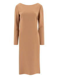 ruffled open-back dress Highlights - Beige - Open back - Draped detailing - Ruffles - Long sleeves - Midi length Imported Composition Silk 41%, Viscose 29%, Acrylic 28%, Elastane 2% Washing instructions Read Manufacturer Guidelines