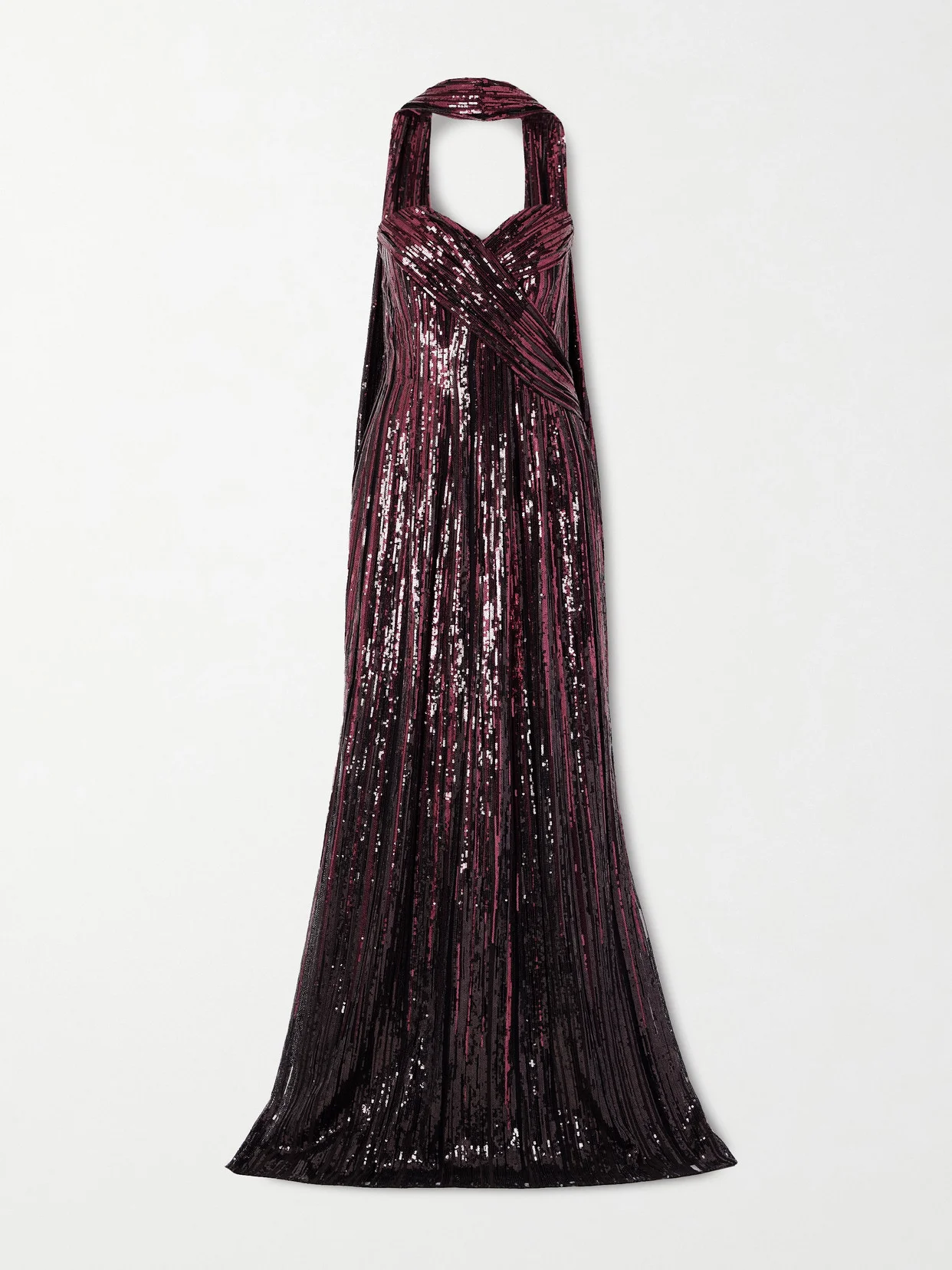 There's good reason so many incredible women turn to Elie Saab when dressing for life's biggest moments - her brand of glamor always steals the limelight. This gown is cut from frothy tulle saturated with shimmering two-tone sequins, and completed with an ethereal draped scarf to pull the strapless sweetheart neckline into focus.