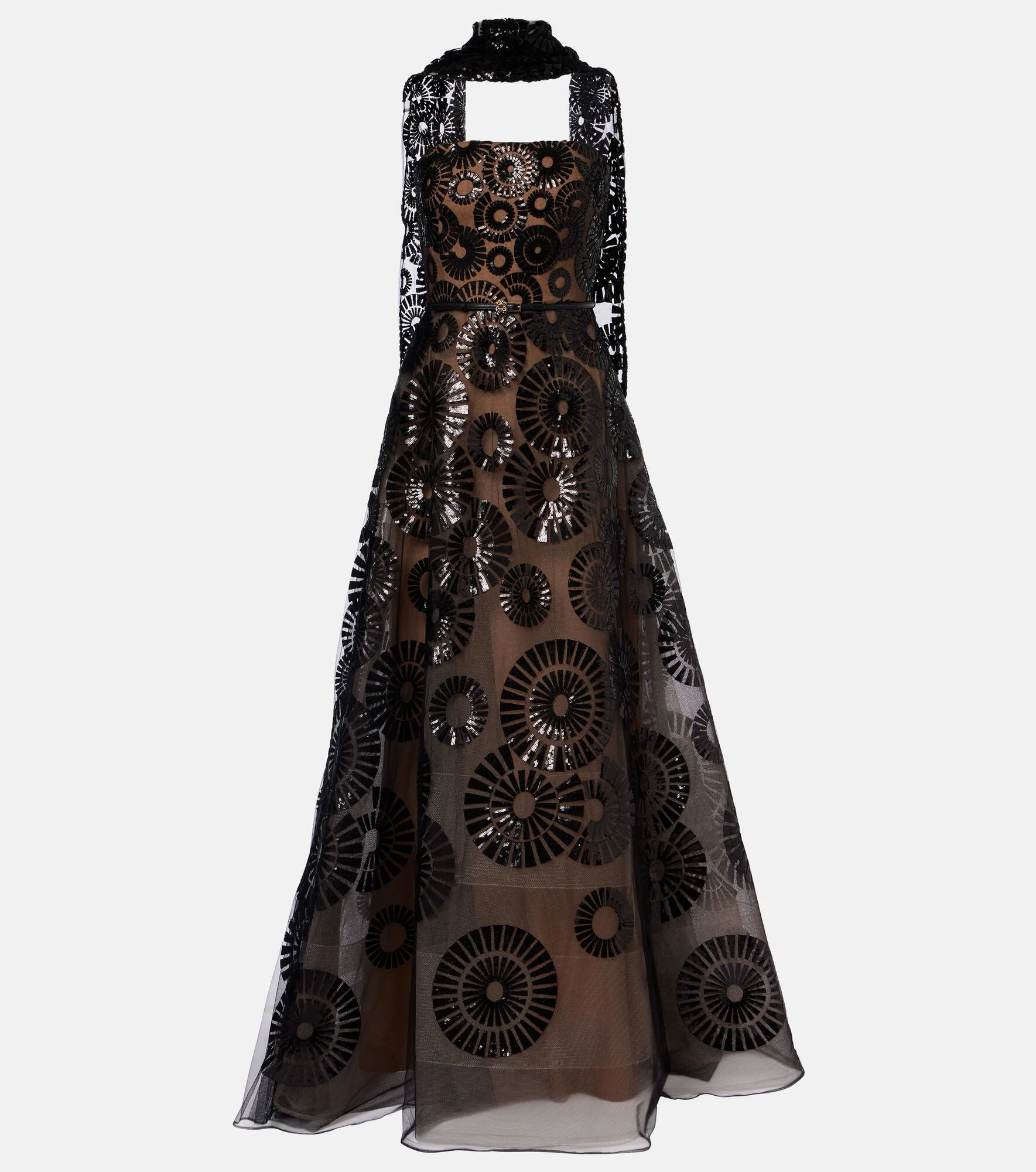 Scarf-detail sequined tulle gown
