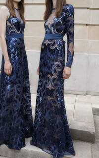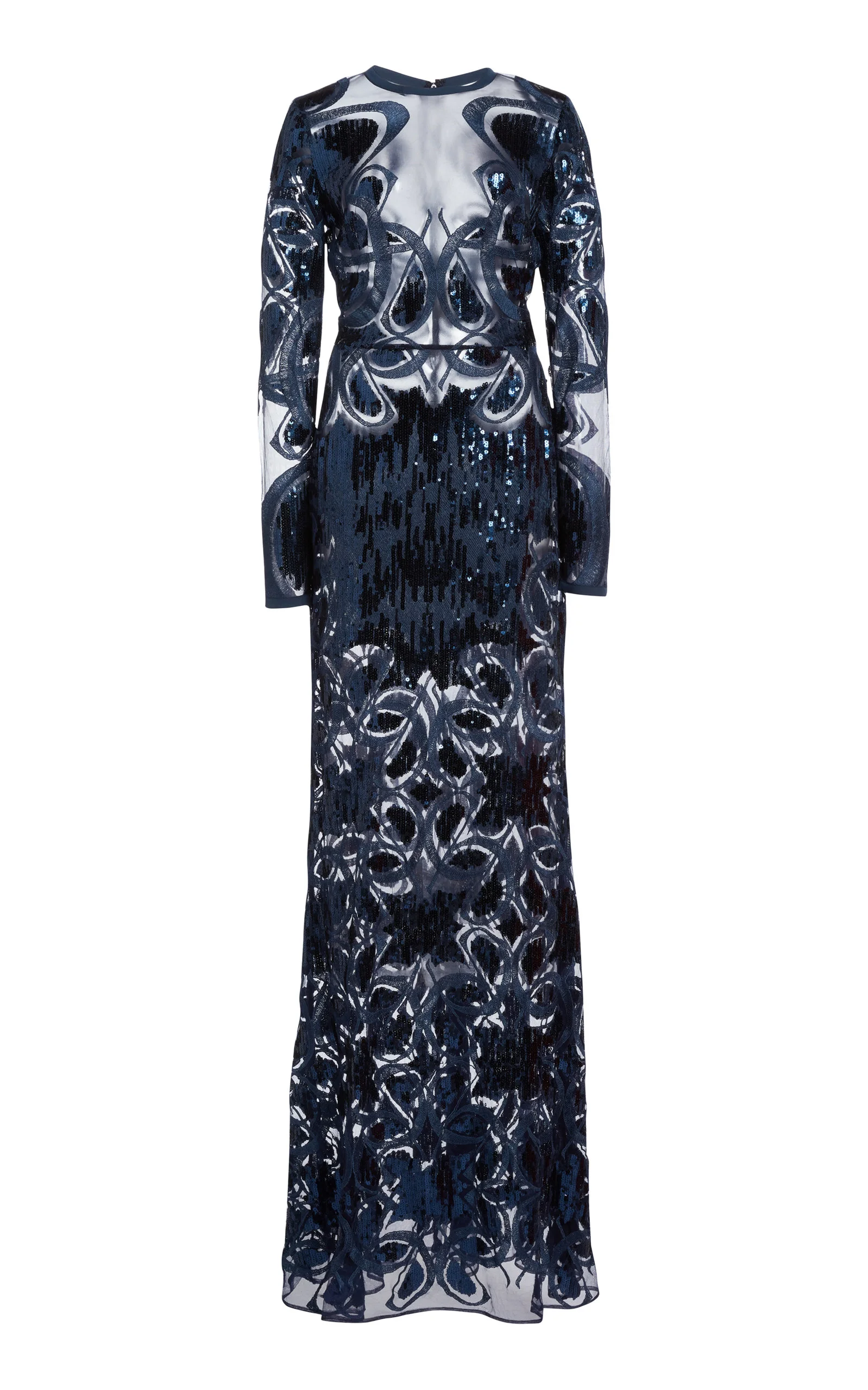 PRODUCT DETAILS - As featured in the Spring Summer '22 lookbook, wear with sandals and a chain clutch to mirror the brand styling - Slim fit, crew neck, embroidered throughout, floor length hem, unlined - Fastening along back - This style fits true to size, we suggest taking your normal size - Composition: 55% rayon, 30% polyester, 15% nylon - Dry clean only - Imported SIZE & FIT - Model is wearing a sample size FR 34 - Fits small to size, our fit specialist recommends taking one size up