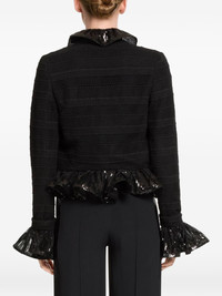 sequin-embellishment jacket Highlights - Black - Macrame detailing - Sequin embellishment - Ruffled collar - Ruffled cuffs - Cropped Imported Composition Viscose 38%, Polyester 29%, Cotton 19%, Acetate 13%, Elastane 1% Washing instructions Read Manufacturer Guidelines