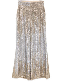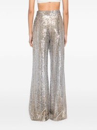 gradient-sequinned trousers Highlights - Gold/silver - Concealed front button, hook and zip fastening - Two side slit pockets Imported Composition Outer: Silk 57%, Polyester 42%, Spandex/Elastane 1% Lining: Silk 100% SIZE & FIT Model measurements Height 5 ft 10 in(1.77 m) Bust/Chest 31.49 in(80 cm) Hips 35.43 in(90 cm) Waist 25.19 in(64 cm) FittingInformation Designed with a flared hem, these trousers allow for a close fit at the waist with a slim fit over the leg and widening towards the hem Made from a midweight stretch fabric, this piece offers elasticity and flexibility when worn