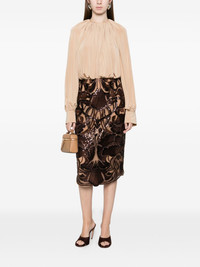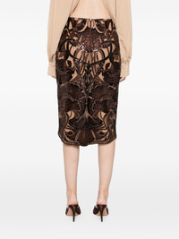 sequin floral midi skirt Highlights - Chocolate brown - Floral pattern - Sequin embellishment Imported Composition Outer: Polyester 32%, Ramie 32%, Nylon 5% Back: Silk 31% Lining: Silk 100% SIZE & FIT Model measurements Height 5 ft 9 in(1.76 m) Bust/Chest 33.85 in(86 cm) Hips 35.43 in(90 cm) Waist 25.59 in(65 cm) Washing instructions Dry Clean Only