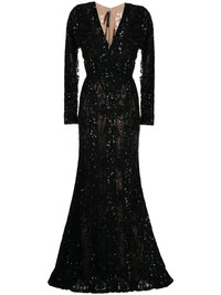 sequined long-sleeve fishtail gown