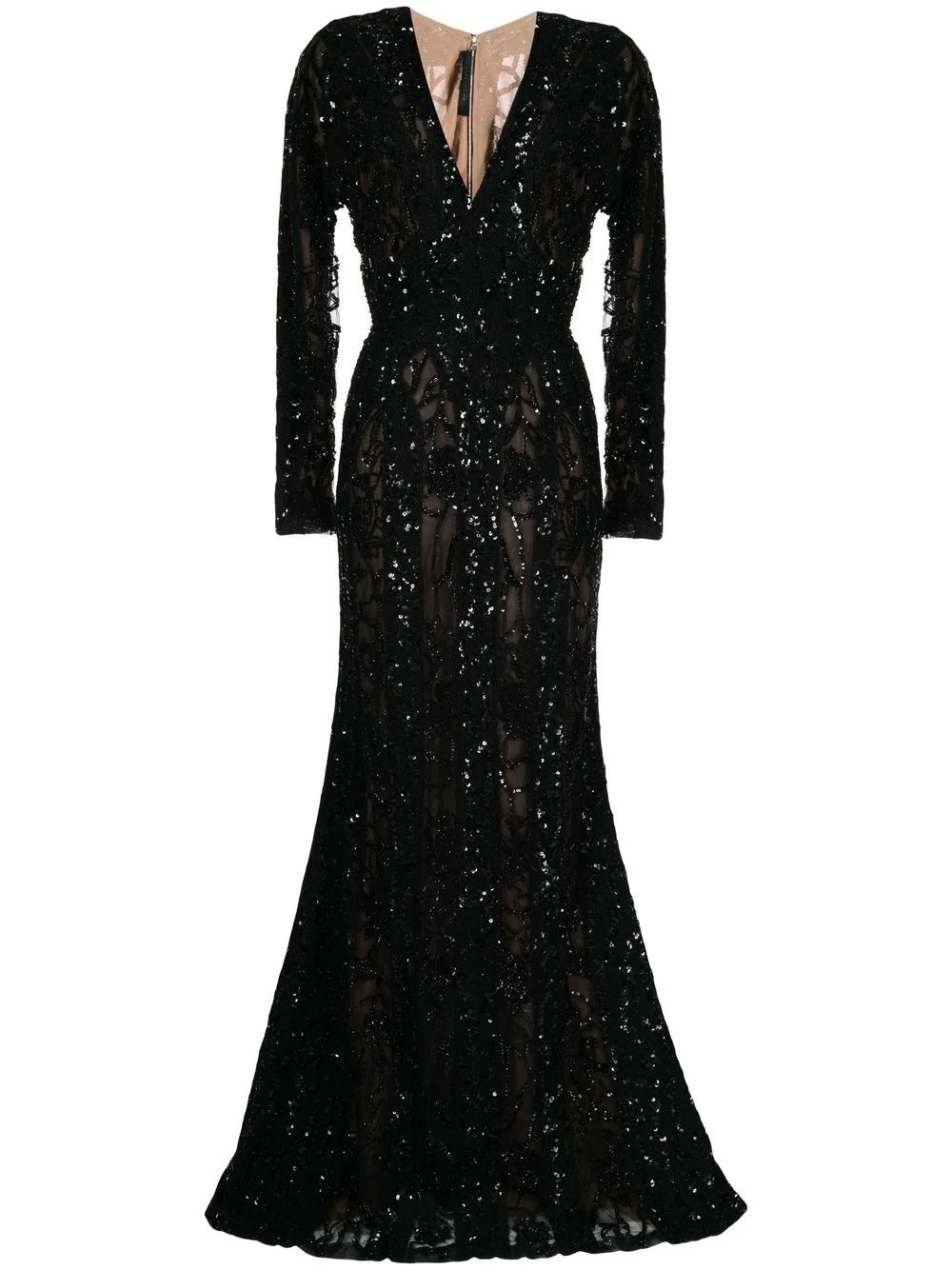 sequined long-sleeve fishtail gown Elie Saab embraces its opulent side with this dazzling gown, embellished with sparkling sequins and embroidery. Carefully placed semi-sheer panelling showcases the brand's impeccable attention to detail, while adding a daring touch to the glamorous silhouette. Imported Composition Body: Polyamide 100% Lining: Silk 100% SIZE & FIT Model measurements Height 5 ft 10 in(1.77 m) Bust/Chest 31.49 in(80 cm) Hips 35.43 in(90 cm) Waist 25.19 in(64 cm) FittingInformation This piece fits true to size. We recommend you get your regular size Designed for a close fit at the bust, waist and hips Made with a mid-weight non-stretch fabric Washing instructions Dry Clean Only