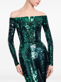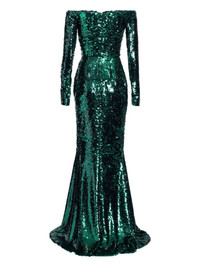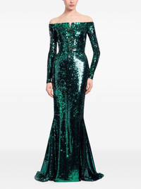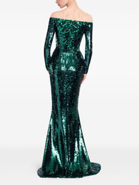 embellished off-the-shoulder maxi dress Highlights - Green - Sequin embellishment - Off-the-shoulder neckline - Long sleeves - Train detail Imported Composition Sequin 100%, Polyester 55%, Silk 45% Washing instructions Read Manufacturer Guidelines