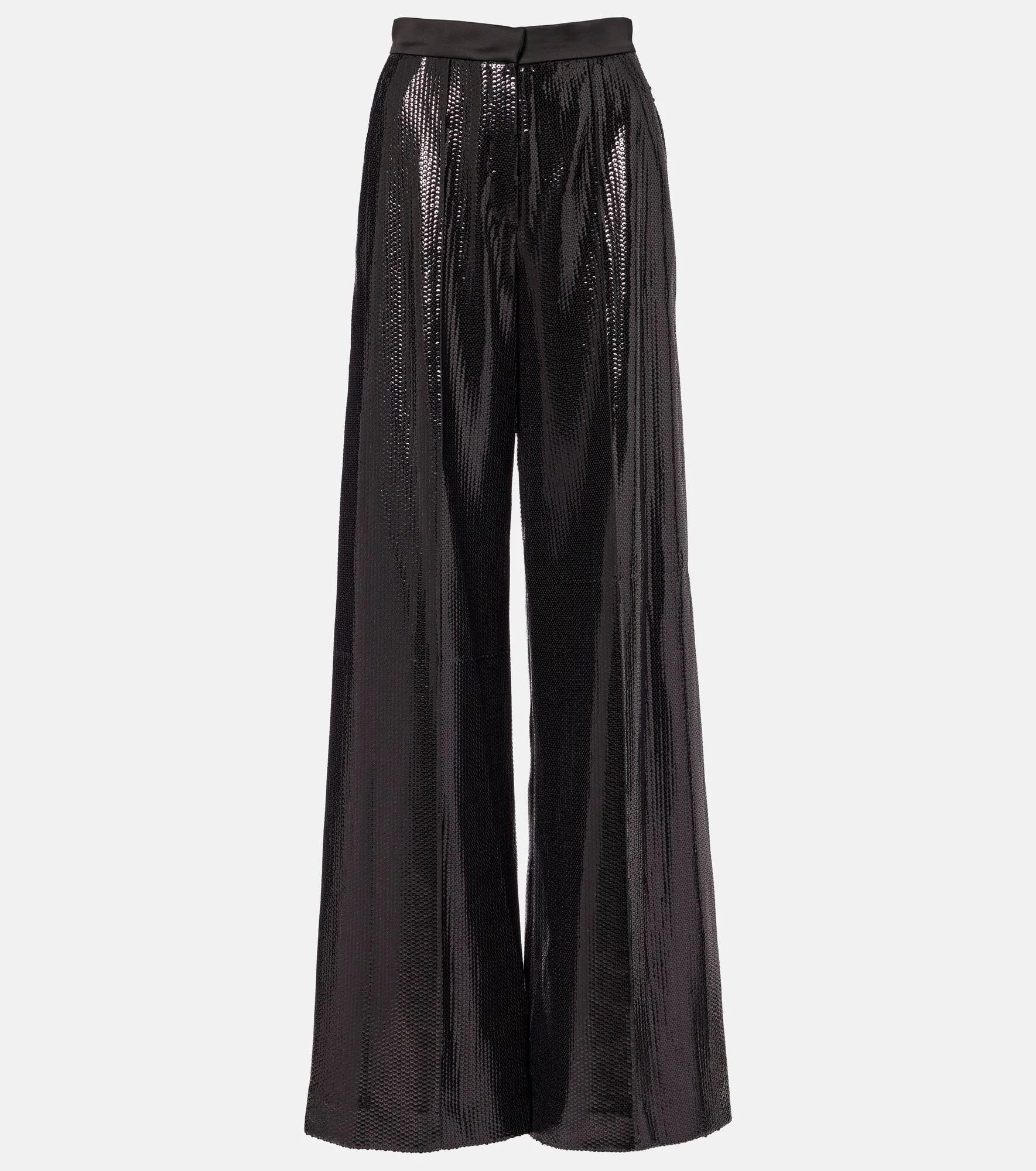 Elie Saab’s impactful designs are proof that the right outfit can make a special occasion all the more memorable. These wide-leg pants are crafted from lustrous satin and stand out with dazzling sequin embellishments throughout. Product Details - Material: 80% polyester, 17% silk, 3% elastane - Care instructions: dry clean - Made in Lebanon - Designer color name: 000 - Item color: black - Lining: 100% silk - Closure: zip and hook fastening - Pockets: slant pockets - Item number: P01090493 Size & Fit - True to size - Non-stretchy fabric - Wide-leg - High-waisted - The model seen in the picture is 178cm-5'10" and wearing a size FR 36