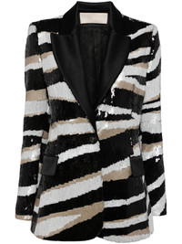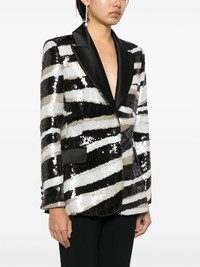 sequinned satin-embellished blazer Highlights - Black/white/brown - Sequin design - Zebra pattern - Dart detailing - Peak lapels - Front button fastening - Shoulder pads - Long sleeves - Buttoned cuffs - Two front flap pockets - Straight hem Imported Composition Outer: Polyester 30%, Polyamide 30%, Cupro 30%, Nylon 6%, Rayon 4% Lining: Cupro 100% SIZE & FIT Model measurements Height 5 ft 10 in(1.77 m) Bust/Chest 31.49 in(80 cm) Hips 35.43 in(90 cm) Waist 25.19 in(64 cm) FittingInformation Designed for a slim fit that sits just away from the body offering a close yet comfortable fit Made from a midweight non-stretch fabric This piece fits true to size – take your usual size Washing instructions Dry Clean Only