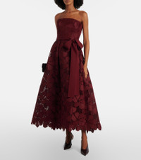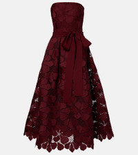 Elie Saab’s impactful designs are proof that the right outfit can make a special occasion all the more memorable. This cocktail dress is crafted from silk-blend guipure lace and features a strapless silhouette with a floral motif and a self-tie waist. Product Details - Material: 60% silk, 40% polyamide - Care instructions: dry clean - Made in Lebanon - Designer color name: Bordeaux - Item color: burgundy - Lining: 100% silk - Closure: concealed zipped back - Boning - Item number: P01103883 Size & Fit - Fits large to size - we recommend trying one size smaller - Strapless - Internal boned corset for support - Adjustable at the waist - Extra fitted bodice, loose skirt - Non-stretchy fabric - The model seen in the picture is 178cm-5'10" and wearing a size FR 34