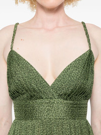 silk dress Highlights - Green - Rear zip fastening - V-neck - Spaghetti straps - Floral print - Flared hem Imported Composition Lining: Silk 100% Outer: Silk 100% SIZE & FIT Model measurements Height 5 ft 9 in(1.75 m) Bust/Chest 34.64 in(88 cm) Hips 36.61 in(93 cm) Waist 26.37 in(67 cm) FittingInformation Designed for a close fit at the chest with a loose fit over the waist and hips Made from a lightweight non-stretch fabric