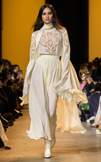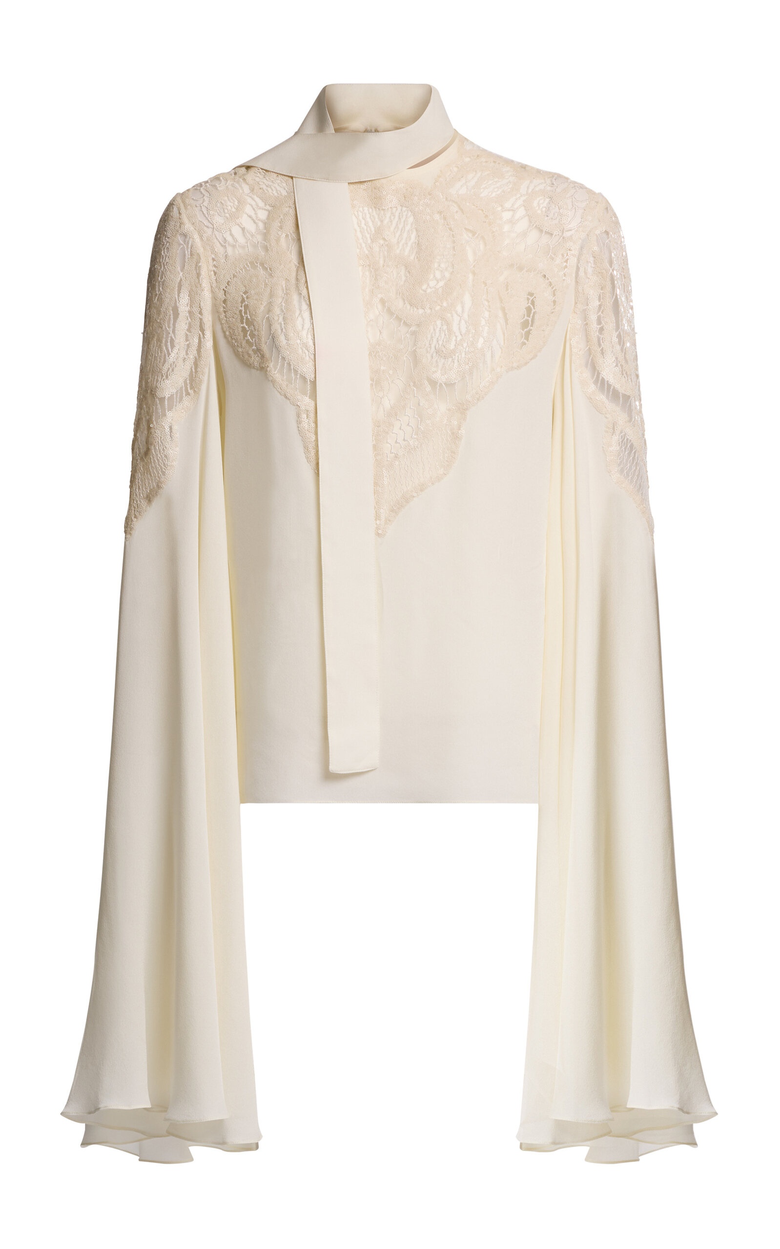 PRODUCT DETAILS - Seen in the Fall/Winter '24 lookbook - Lace detail, flared sleeves - Unlined - Composition: 69%PL 23%RA 8%NY - Color: White - Concealed zip fastening - Made in Lebanon