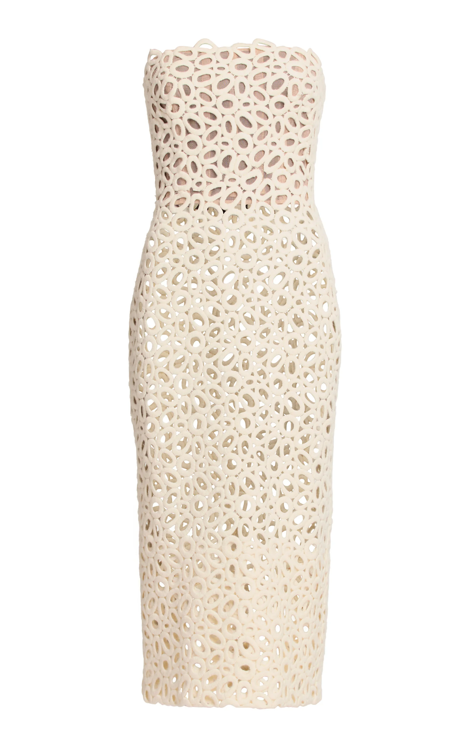 PRODUCT DETAILS - Slim fit, strapless, macrame - Zipper fastening - Lined - Composition: Macrame - Color: POWDER WHITE - Dry Clean Only - Fall '25