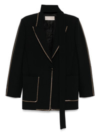 stud-embellished blazer Highlights - Black - Front button fastening - Two front patch pockets - Detachable adjustable waist strap - Full lining Made in Italy Composition Polyester 52%, Virgin Wool 43%, Elastane 5% Washing instructions Dry Clean Only