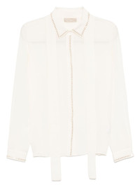 stud-embellished silk shirt Highlights - Off-white - Front button fastening - Detachable adjustable waist strap - Buttoned cuffs Made in Italy Composition Silk 100%