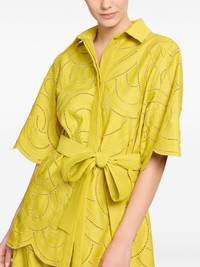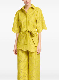 swirl-embroidered shirt Highlights - Yellow - Scalloped hem - Button fastening Imported Composition Polyester 60%, Organic Cotton 40% Washing instructions Read Manufacturer Guidelines
